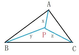 △ABCの内部の任意の点Pに対して,