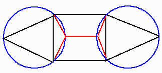 正方形の頂点A,B,C,Dの位置に4校があり、この4校を連結するネットワーク(どの2校もネットワークを通して、行き来できるようにする)を結ぶ計画があります。 |