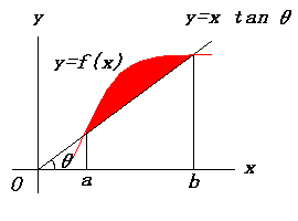 一般に、曲線C:y=f(x)と直線m:y=xtanθ で囲まれた図形を、直線 m を軸として回転