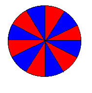 - 上のようにおうぎ形に切って、下のようにおうぎ形を並べてみます。