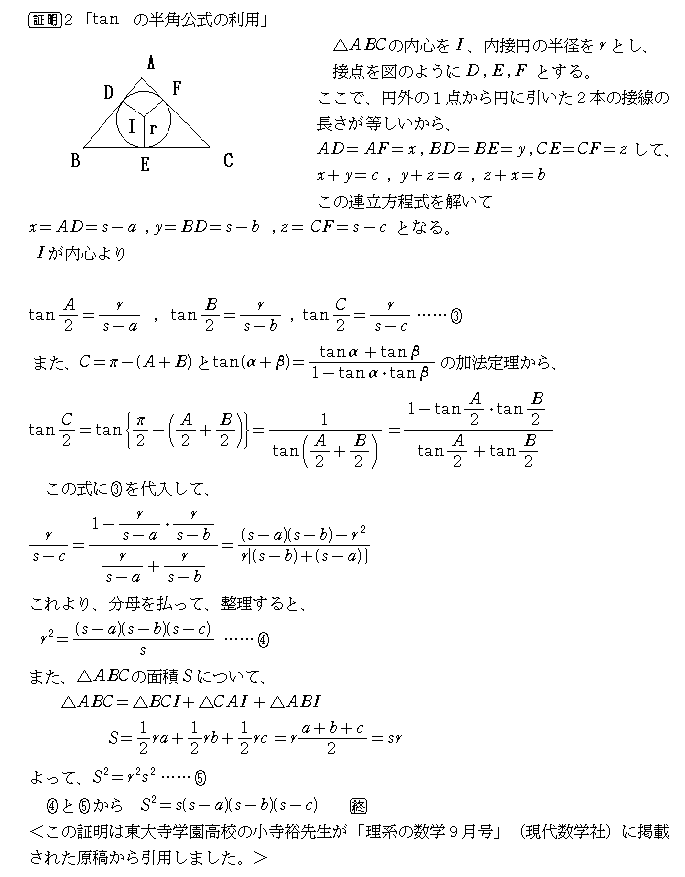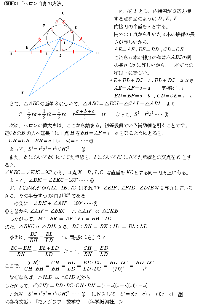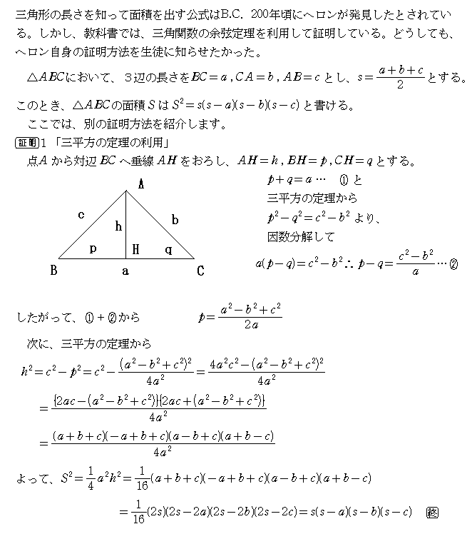 ヘロンの公式<ヘロン自身の証明と現代風の証明>