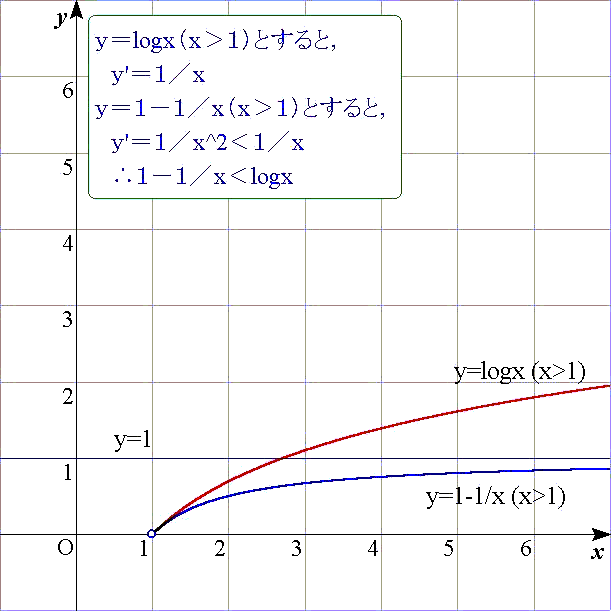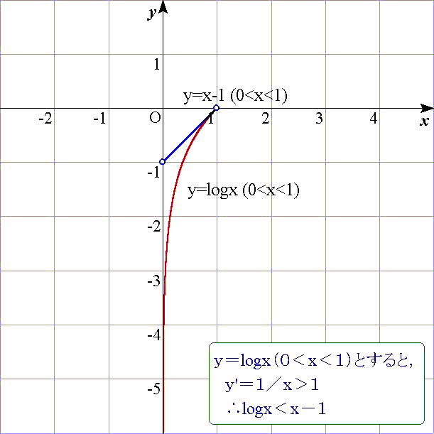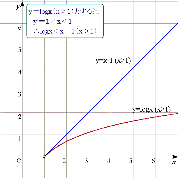 故に,g(x)=(x−1)−logxとすると,g(x)>0を証明すればよい.