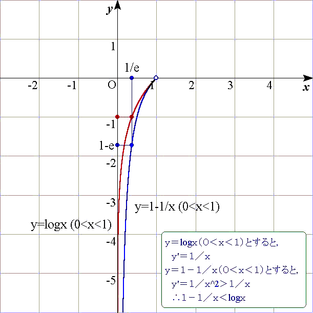 x=b/a>1とすると,1−1/x<logx