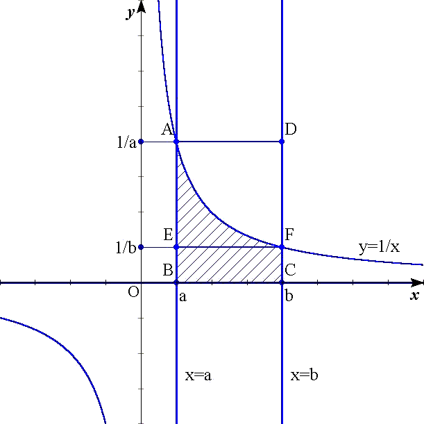 y=1/x で、0<a<b のとき、(b-a)*1/b <∫1/x dx <
