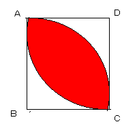 すると図形は,正方形内部にあり,B,Dを中心とし,半径2の円周によって囲まれたものと分かります