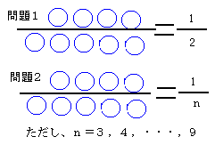 問題1:「下図の○の中に1から9までの数字を1つずつ用いて、分母が5桁、分子が4桁