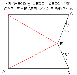 太郎さんは、子供が中学時代のとき、「正方形ABCDについて、∠ECD=∠EDC=15゜のとき、