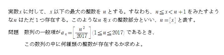 1から6までの各数字を1回ずつ用いて、結果が2017となる式を作ってください。 使用できる演算は+、−。×、÷ と 括弧( )とします。 例 2017=42×6×(3+5)+1