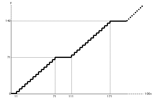 であるから,71項のうち,はじめの41項が floor(x) であり,