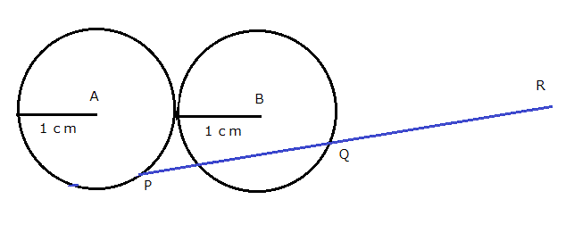 図のように互いに接する半径1cmの2つの円AとBがある。 円A上に点P、円B上に点Qがあり、点Qに関する点Pの対称点を点Rとする。 点Pと点Qがそれぞれ自由に円周上を動くとき、点Rの通過する領域の面積を求めよ。