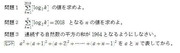 問題1と問題2の記号[x]はガウス記号で,xを超えない最大の整数を表すものとする。