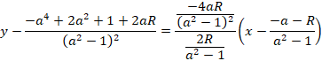 ((t^2-s^2-a^2)/(a^2-1)+t)^2=(-2*a(t-1)/(a^2-1))^2+s^2.