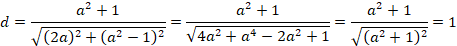 = |-(-a^2+3)/(a^2-1)-2|/√(((-2*a)/(a^2-1))^2+1)