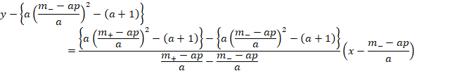 直線PQの傾きをm−、直線PRの傾きをm+とします。