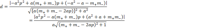 |(a+b)・0−0−ab−2|/{(a+b)2+(−1)2}1/2