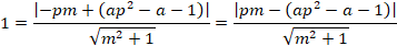 |-a*b-2|/√((a+b)^2+1) = 1.