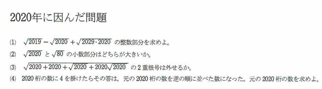 <水の流れ:2020年に関する問題が送られてきました。この問題の解答をお寄せください。