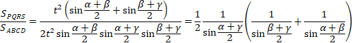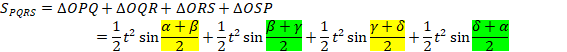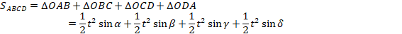 2*(p,q,r,sでできる□の面積)=sin(α+β)+sin(β+γ)+sin(γ+δ)+sin(δ+α)