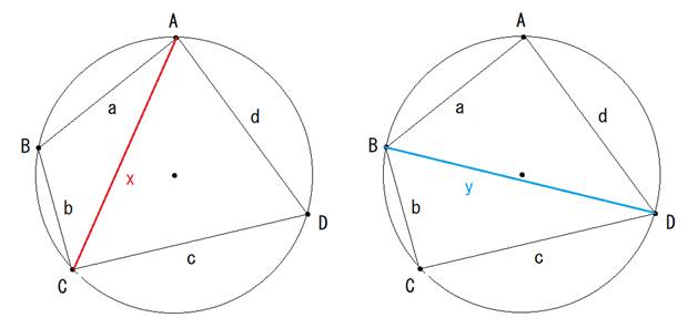 右の図でyは左の図で、「a→b→c→d→a」のように文字をずらせばよいので、