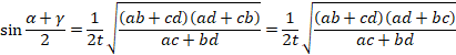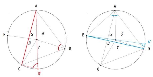 2*(a,b,c,dでできる□の面積)=sin(2α)+sin(2β)+sin(2γ)+sin(2δ)