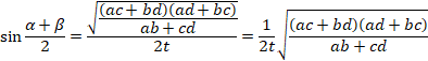 / (2(sinα*cosα+sinβ*cosβ+sinγ*cosγ+sinδ*cosδ))