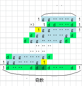 nが2k−1のとき、係数nCiがすべて奇数となります。