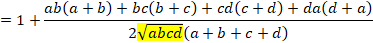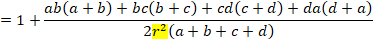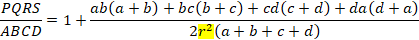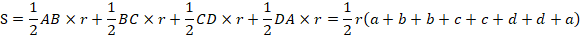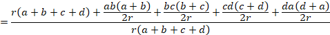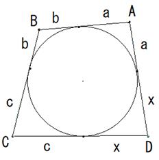 四角形の4辺の長さが頂点から内接円の接点までと分割されて与えられると、事情が変わります。