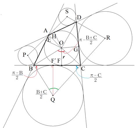四角形ABCDは円に外接し,図のように接点をE,F,