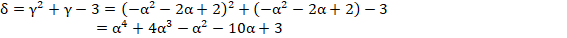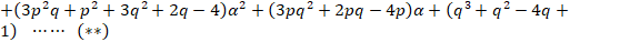 αの2次式と考えるのは、βの右辺を方程式の左辺に代入して(*)で割った余りがαの高々2次式になるからです。