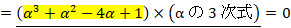 方程式x^3+x^2-4x+1=0の1つの解をαとするとき,