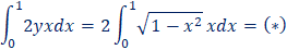 問題(1)図のような半径1の半円の重心座標を求めよ。