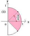 問題(2)図のような半径1の四分円の重心座標を求めよ。