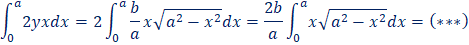 この長方形の重心はx軸上にありモーメントは、2ydx・x です。