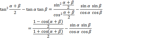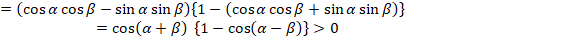 ここでα、βは0からπ/4までの範囲なので、分母は正です。