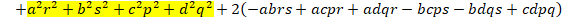 +(a*g+b*h+c*e-d*f)^2 + (a*h-b*g+c*f+d*e)^2