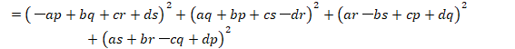 +(a*g+b*h+c*e-d*f)^2 + (a*h-b*g+c*f+d*e)^2.