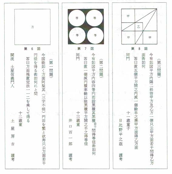 今回の三問は11歳から13歳までの児童の問題です。答えは当時の漢文を解読して、確かめてください。もちろん現代風の解答で答えとします。
