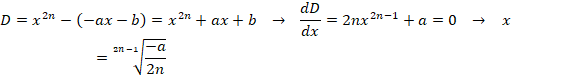 実数解を持つのは、曲線と直線の差Dをとったとき、0以下のときです。