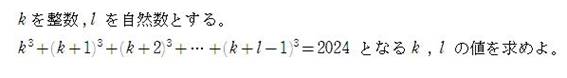 k^3+(k+1)^3+(k+2)^3+ … +(k+l-1)^3=2024 ---(★)