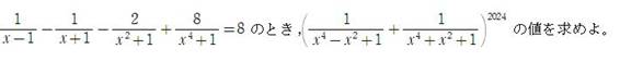 <コメント:今回の問題1(6), 有理化まではすぐ見えましたが,その後が見えず後回しに。最後に16項すべてを書き出してみたら,うまく消えたり整理したりできることに気がつきました。>