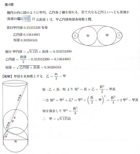 楕円内に図の如く大円小円各二個を容れる 只云長径八寸 短径四寸