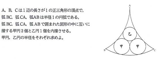 新シリーズ(正三角形の辺や円弧によって囲まれる図形内の3円の半径について)8・9問目終了