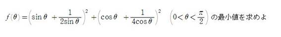 Min{f(θ)}=5/2+9/16=49/16, sin(θ)=√6/3 のとき。