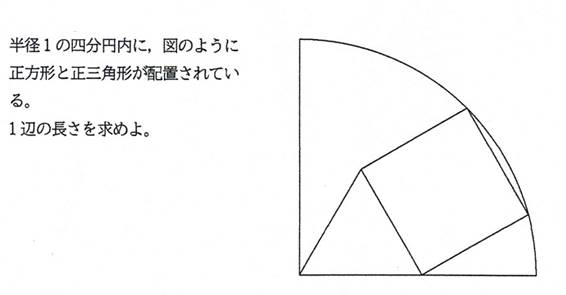 一辺の長さは,(1/2)*(6^(1/2)-2^(1/2))(答) (答)