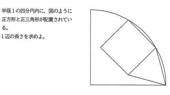 一辺の長さは,(1/2)*(6^(1/2)-2^(1/2))(答)
