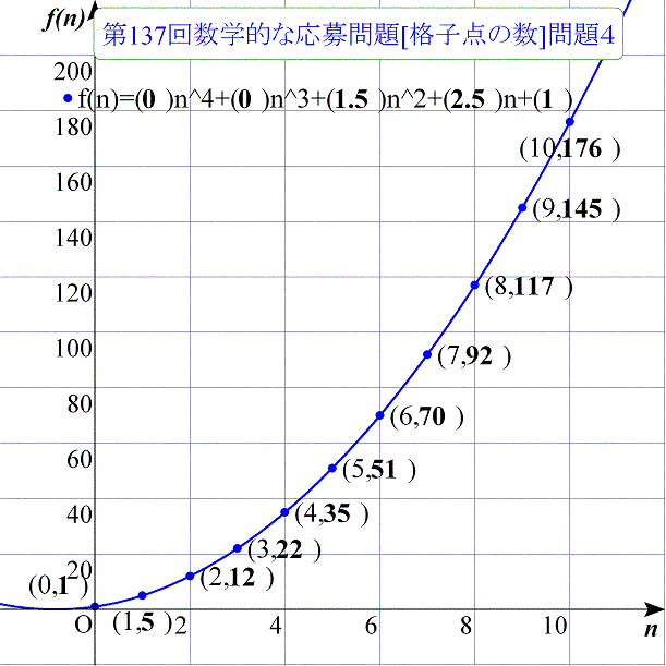 cof関数を使って,その曲線の関数の各項の係数を求め,答とする(cof(4,f(x))〜cof(0,f(x))).