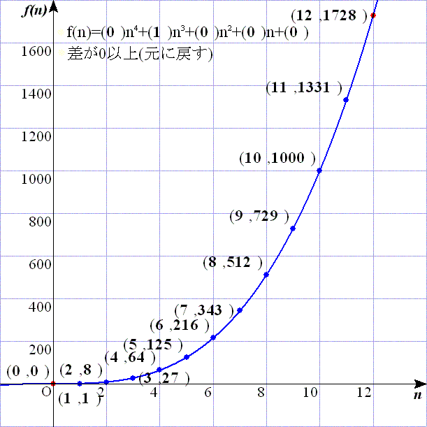 f(1)=1,f(2)=8,f(3)=27,f(4)=64,f(5)=125,f(6)=216,f(7)=343,f(8)=512,f(9)=729,f(10)=1000,f(11)=1331,f(12)=1728