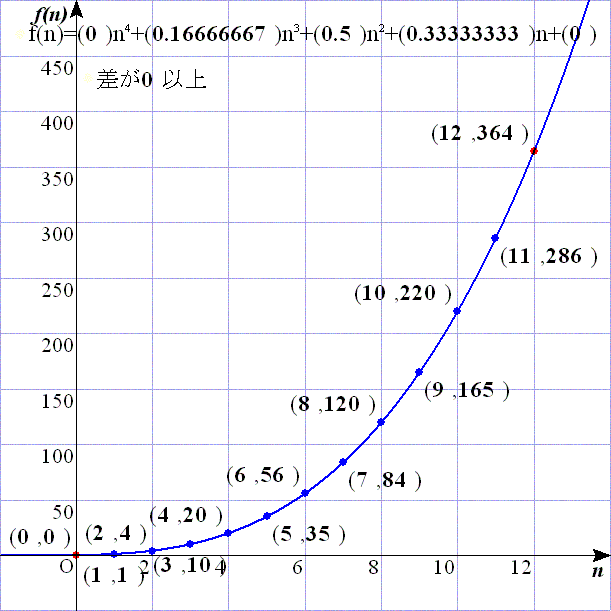 となるので,f(n)=n3/6+n2/2+n/3=n(n+1)(n+2)/6=n+2C3=nH3となる.