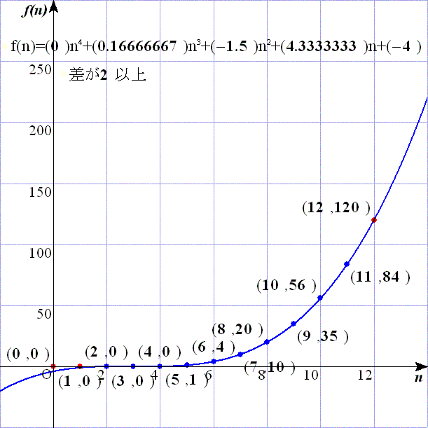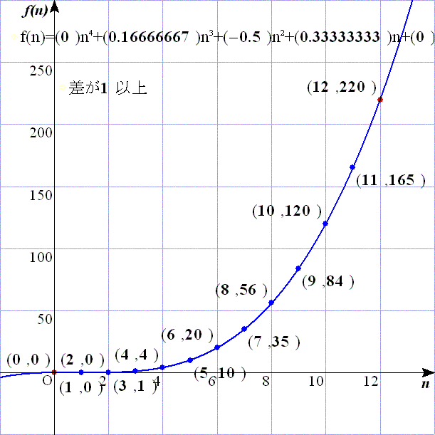 f(0)=0,f(1)=0,f(2)=0,f(3)=1,f(4)=4,f(5)=10,f(6)=20,f(7)=35,f(8)=56,f(9)=84,f(10)=120,f(11)=165,f(12)=220