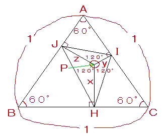 同様に,xを固定したとき,最大になるのはy=-x/2+sqr(3)/4のとき.